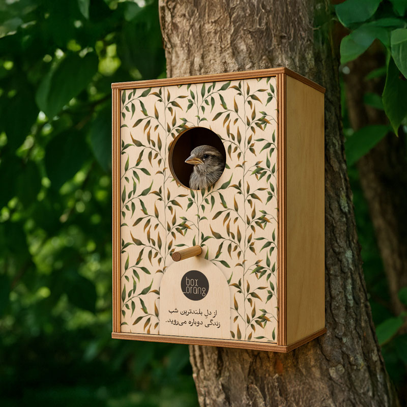 وقتی جعبه هدیهتان را باز میکنید، داستان «جعبه آشیانه» تازه شروع میشود. این جعبه چوبی فقط یک بستهبندی نیست؛ یک محصول دومرحلهای است که بعد از باز شدن هدیه، تبدیل میشود به آشیانهای واقعی برای پرندههای کوچک محلی.